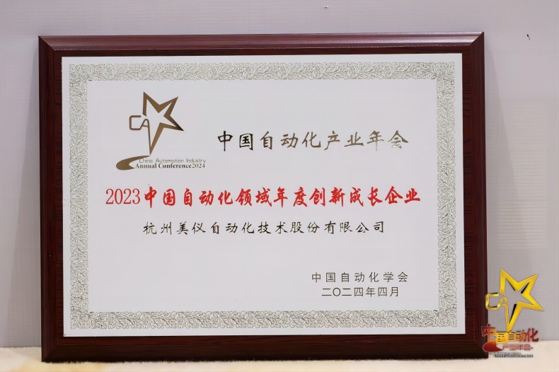 4月11日,美仪荣膺“2023中国自动化领域年度创新成长企业”。 该奖项由中国自动化学会颁发,旨在表彰「2023年度中国自动化领域具有创新性、高成长性,在某一领域取得骄人业绩或重大突破,引起业内高度关注的中国本土及外资企业」。