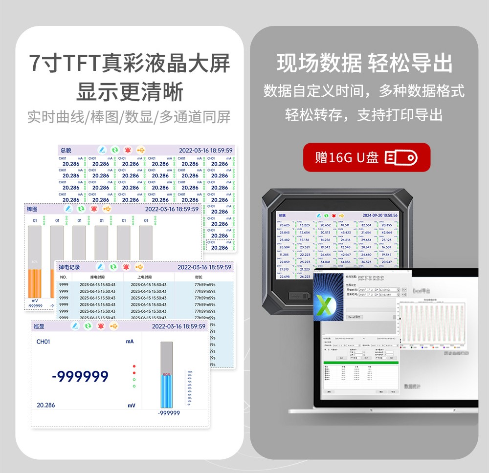 本产品为工业无纸记录仪,配置分辨率为 1024*600 的 7 英寸 TFT真彩全视角液晶显示屏。可以接入电流、电压、热电偶、热电阻、电阻和频率(定制)等多种类型工业标准信号,实现温度、湿度、压力、液位、流量的显示、记录、超限监控、报表、数据通讯、信号变送以及流量累积、流量温压补偿等功能。可应用于冶金、石油、化工、建材、造纸、电力、食品、制药、工业水处理等行业。咨询热线:400-152-1718